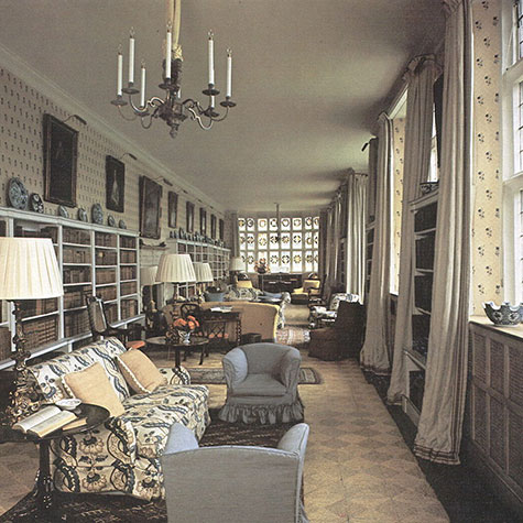 In 1954, Nancy Lancaster bought Haseley Court, a large country house in Oxfordshire. She and John Fowler worked closely together on its restoration and decoration, and the beautiful rooms they created there together epitomised the English country house style for which Colefax and Fowler became celebrated.